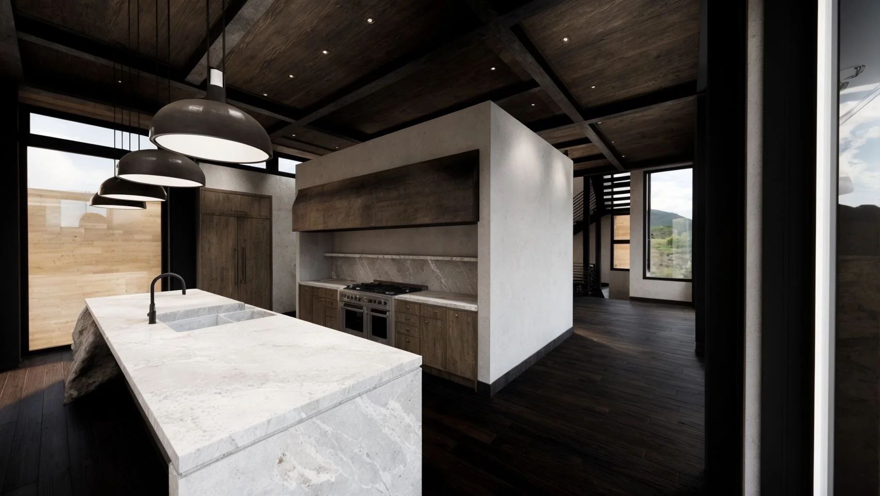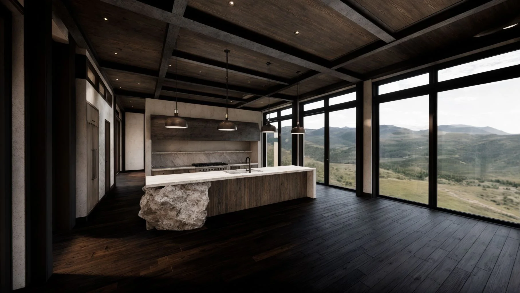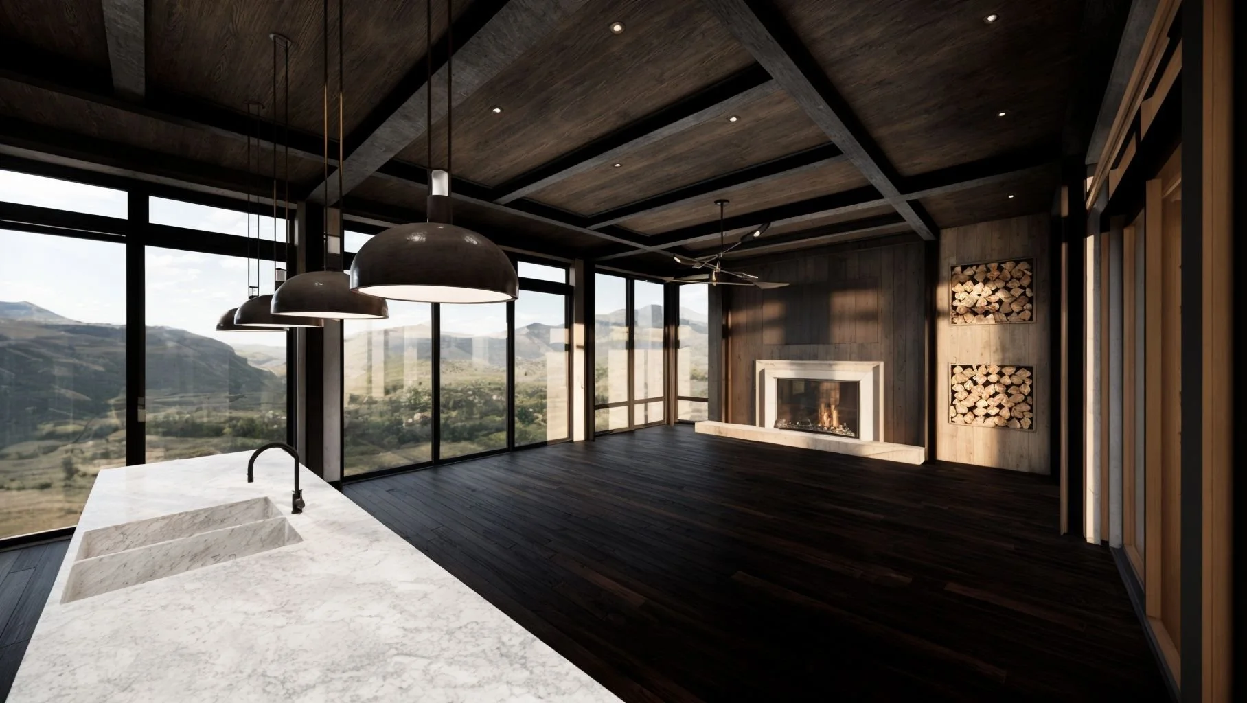 The aim was to blend functionality with a sense of understated luxury, using natural textures and a muted palette that reflects the beauty of the surrounding landscape. This project has been a fantastic opportunity to bring my design visuals to a bold and inspiring stateside property.